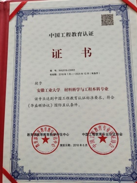 本专业学制4年,授予工学学士学位。2019年获首批教育部国家级一流本科专业建设点,为安徽省目前唯一获批的材料科学与工程专业;2017年通过教育部工程教育专业认证,也为安徽省首个通过的材料科学与工程专业,标志专业办学水平与国际一流工程教育水平接轨。专业具有“本-硕-博”三位一体的培养体系,是支撑安徽省材料科学“高峰学科”建设、冲击世界一流学科的重要力量。