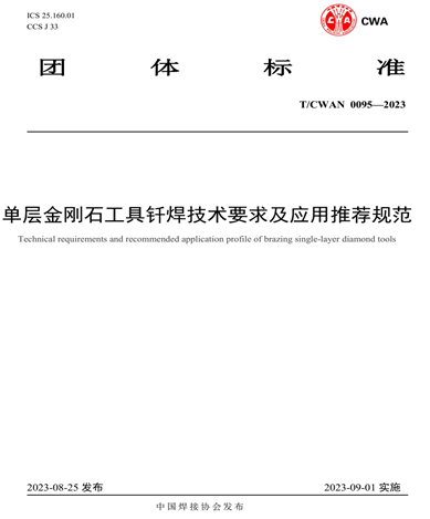 参与撰写了一项钎焊技术团体标准。标准名称:《单层金刚石工具钎焊技术要求及应用推荐规范》。该标准自2023年9月1日起实施。