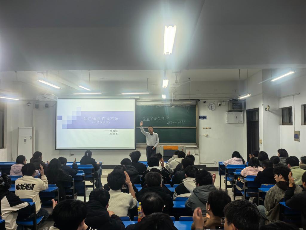围绕“知彼知己,百战不殆”的核心主题,陆昌浩结合钢铁材料行业发展趋势、企业人才需求标准与多年人力资源管理经验,系统讲解职业生涯规划的核心逻辑。他从“知己”和“知彼”两大方面展开,引导学生客观认识自身性格、能力与兴趣,精准匹配材料专业对应的职业方向;同时详细解读企业招聘看重的核心素养、实习实践要求与职场成长规律,帮助学生厘清校园与职场的衔接要点。他鼓励同学们立足学科基础,尽早明确发展目标,主动积累实践经验,不断提升综合竞争力,以清晰规划与扎实准备应对未来职业挑战。