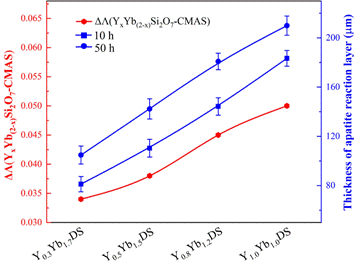 (YxYb(2-x)Si2O7与CMAS熔盐的光学碱度差异及反应层厚度内在联系)