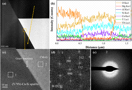 (CMAS与YxYb(2-x)Si2O7在界面处生成抑制CMAS熔盐渗透的磷灰石层)