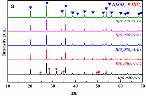 不同摩尔比热处理HfO2-SiO2涂层的XRD图谱
