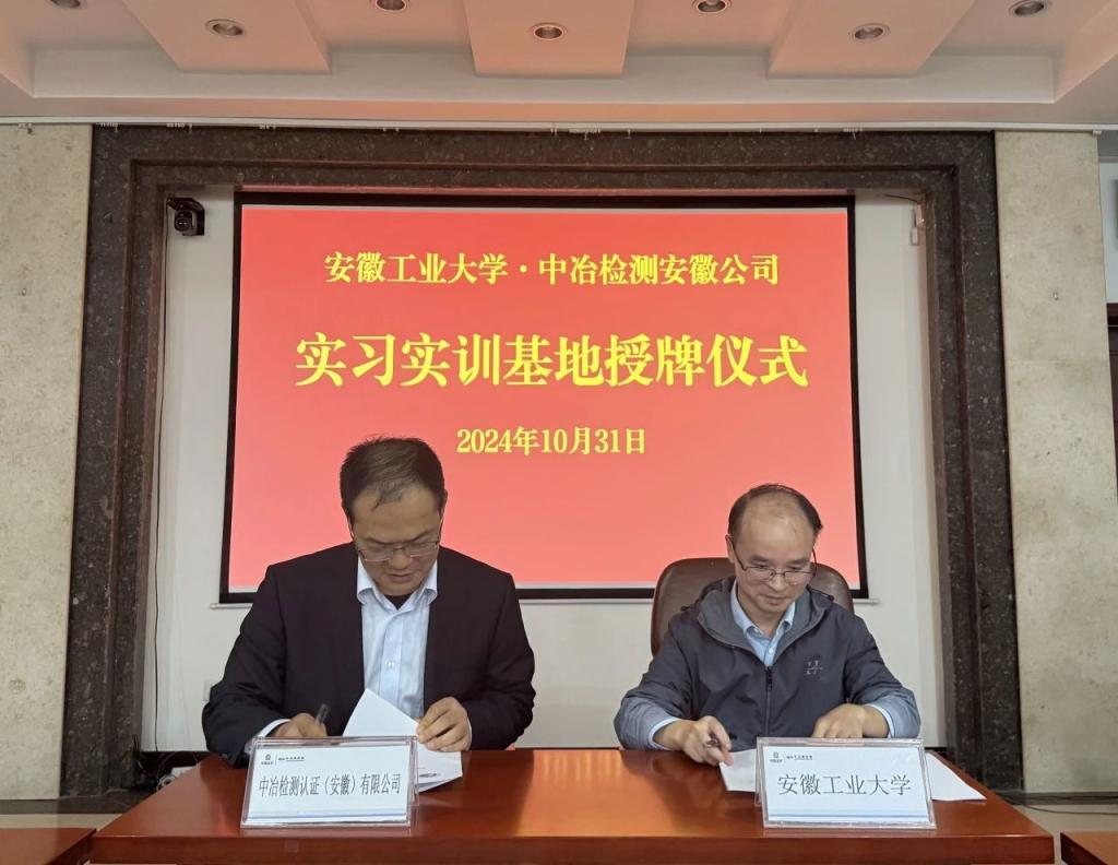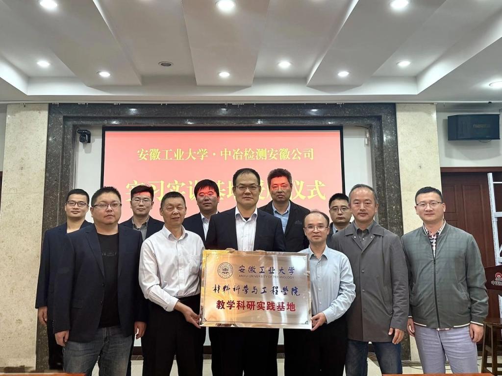 夏爱林副院长一行,前往中冶检测安徽公司开展实习实训基地签约暨揭牌仪式。中冶检测安徽公司总经理张长安、副总经理雷团结以及相关部门负责人参加活动。