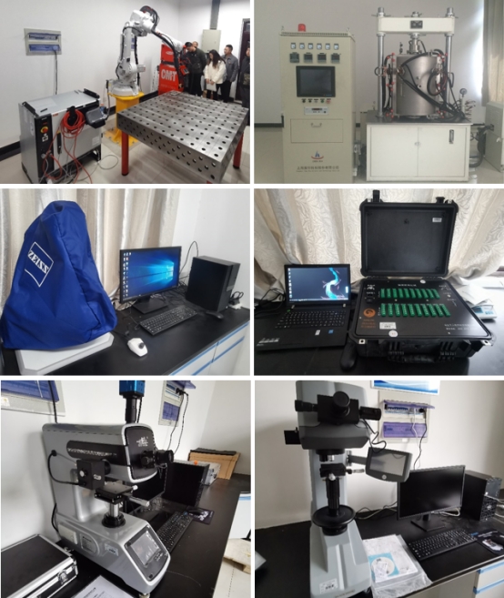 目前团队具备焊接制造与加工实验室和组织性能分析测试设备,包括Fronius Advanced 4000机器人自动焊接系统、等离子弧/CMT电弧焊接数控加工平台、真空钎焊/扩散焊系统、威尔逊Wilson VH1150宏观维氏硬度计、蔚仪HV-1000TPTA显微维氏硬度计、焊接应力测试仪、宏观/微观体式显微镜等。