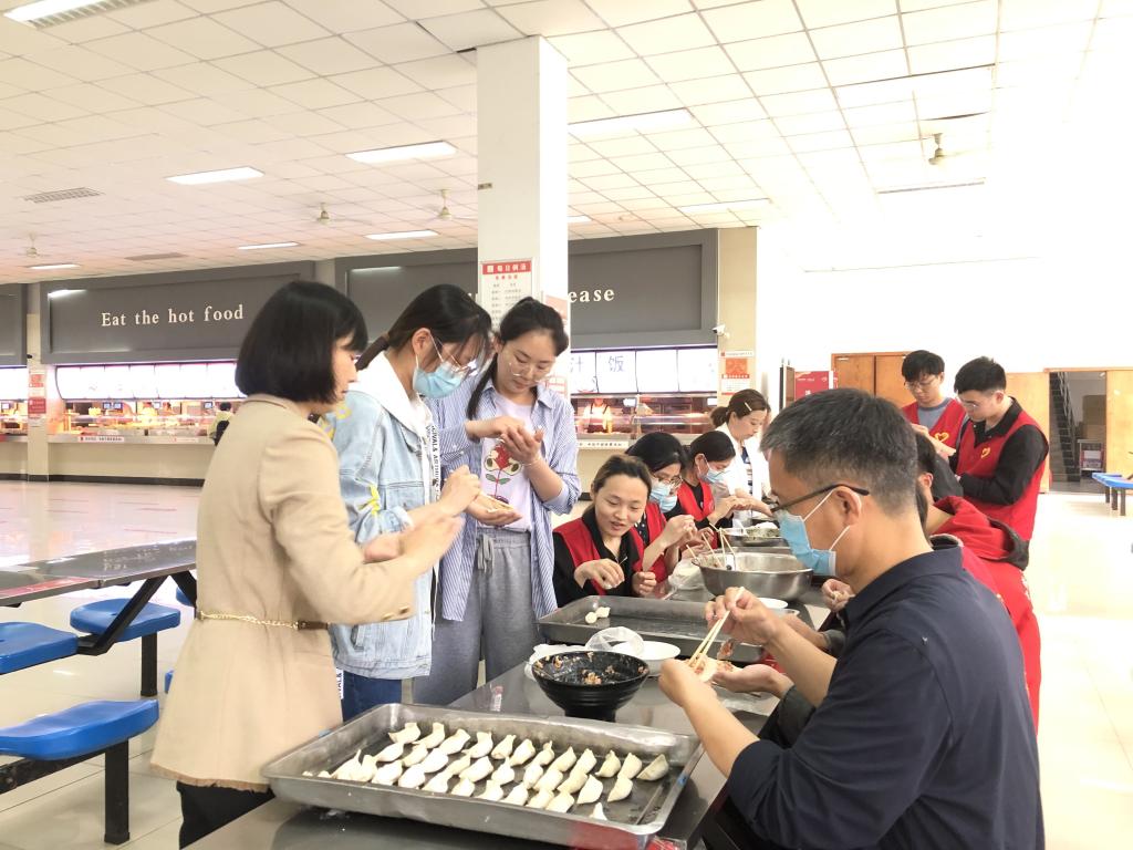 (师生共聚一堂,一同包饺子)