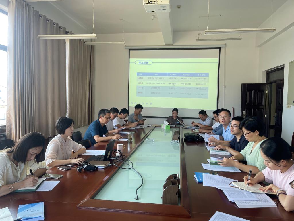 班主任管理条例》等文件制度,重点强调了班主任工作职责和要求,并对迎新工作进行了部署安排。接下来,两位辅导员做了简单的自我介绍,表示希望与各位新生班主任共同将2022级新生培养成“材”。院团委书记张佩佩就团学工作做了介绍,鼓励班主任引导学生积极参加团学活动,实现学生德智体美劳全面发展。