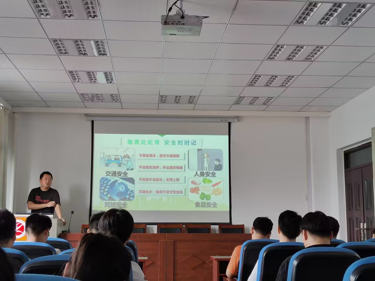 的管理规定。他强调暑期安全工作是重中之重,必须高度重视,防患于未然。全体学生要注意实验室安全,做好易制毒、剧毒药品的保管和存放,易燃易爆物品要严格按照规定保存,使用中要小心谨慎,注意防火。假期禁止晚上在实验室睡觉,部分宿舍要合并住宿,不能单人住宿,禁止违规停放电动车和违章充电。他强调夏季禁止到自然水域游泳,谨防溺水,留校的同学要注意交通安全、食品安全,严格准守校纪校规。他提醒大家对电信诈骗时刻保持警惕,较大金额的转账要提前告知辅导员,帮助鉴别避免损失。