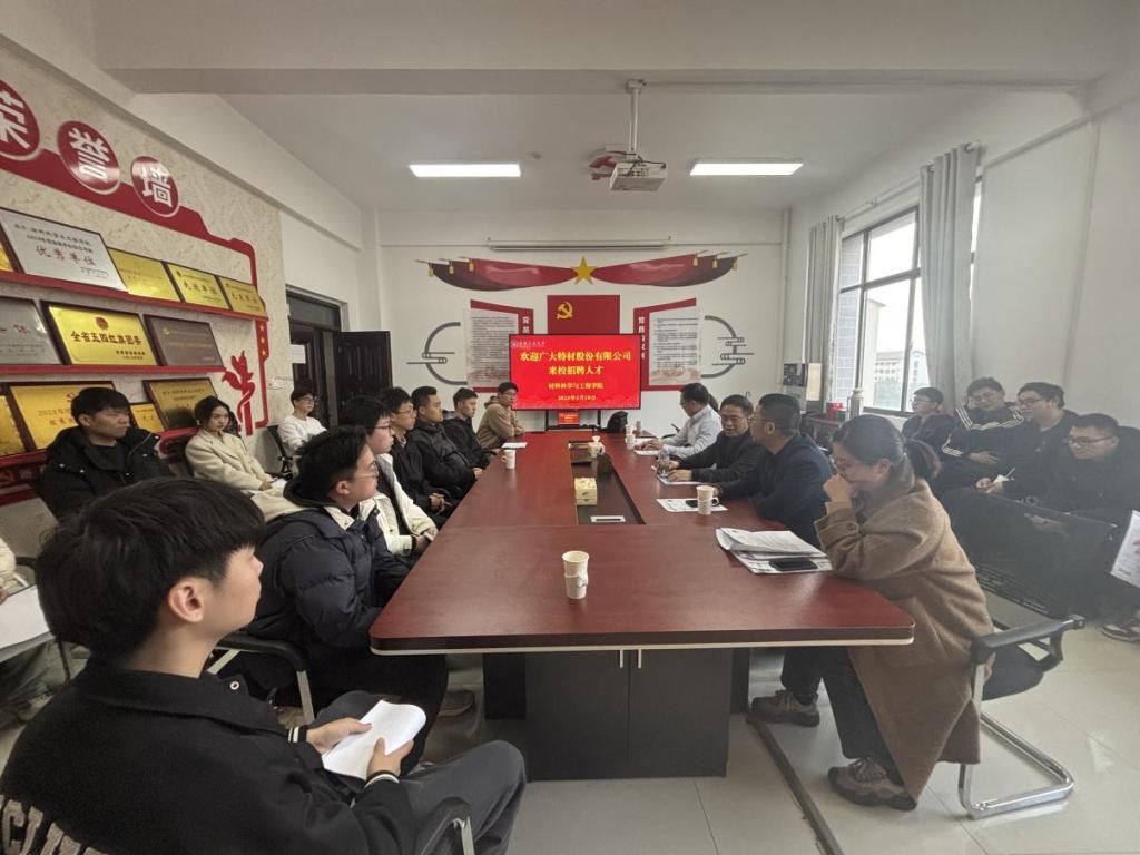 为深化产教融合、拓宽毕业生就业渠道,3月10日、11日,四川麻将血战到底 分别邀请中探集团马鞍山冠德公司、张家港广大特材股份有限公司、福耀集团等单位在材料南楼516举办就业创业讲座暨四川麻将血战到底 化、专业化专场招聘宣讲会。院长柳东明,党委副书记、纪委书记、副院长汪盛颜,毕业班辅导员、2025届求职毕业生参与活动。