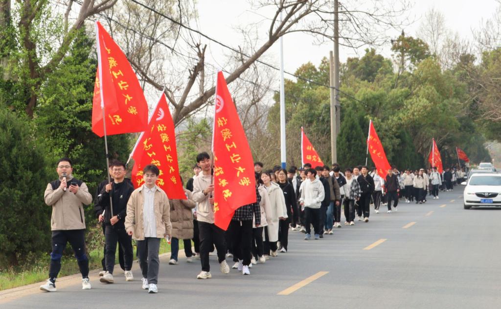 清晨6点15分,200余名师生党员、校青马班学员列队阶教广场。庄严的升旗仪式后,队伍迎着晨光沿马向路、石锁路挺进濮塘烈士陵园。行至石锁路中段,一名学生体力不支落后,身旁学生党员迅速接过背包、递上补给,此起彼伏的“加油”声中,三人并肩前行。党旗飘扬、军歌铿锵,蜿蜒的队伍如红色长龙,在春日山道上刻下信仰足迹。