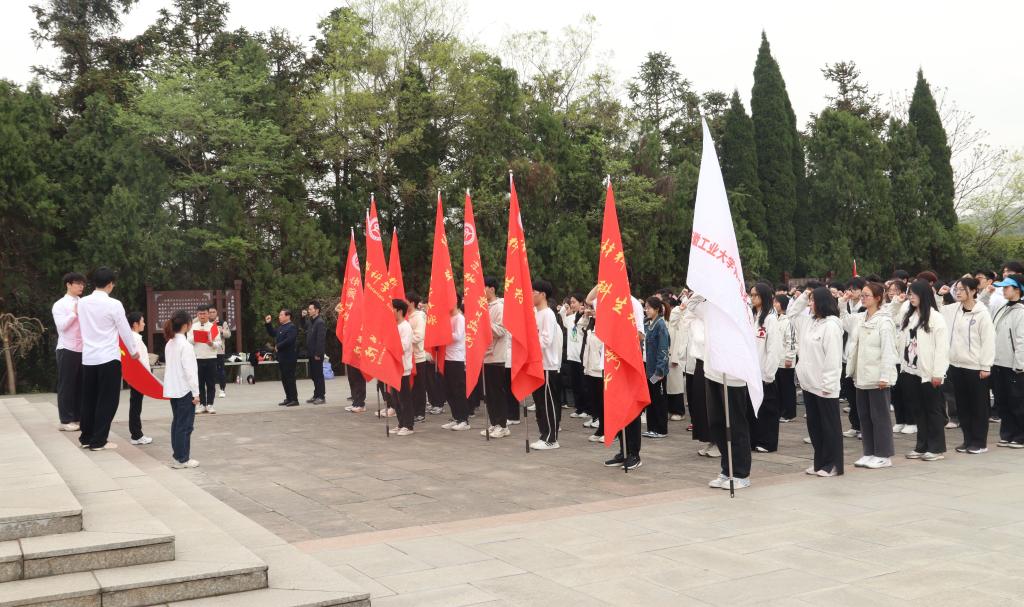 历经近4个小时,徒步16公里,在辅导员孙兴旺的领唱下,同学们一路高唱《国际歌》《歌唱祖国》《强军战歌》等革命歌曲。抵达烈士陵园后,师生围绕烈士纪念碑仔细阅读碑文,向革命先烈敬献鲜花、默哀悼念,面向党旗重温入党誓词。校第五届辅导员宣讲团成员孙艳以《淬火涅槃践初心,真材实料承使命》为题讲授微党课。“长征是人类精神史上的巍峨丰碑,它告诉我们:信仰的力量可以跨越雪山草地,穿透时空界限。”孙艳动情说道,“广大学子既要锻造‘真材实料’的专业本领,更要淬炼‘又红又专’的精神品格,让长征精神在实验室灯火与科研攻坚中永续传承。”
