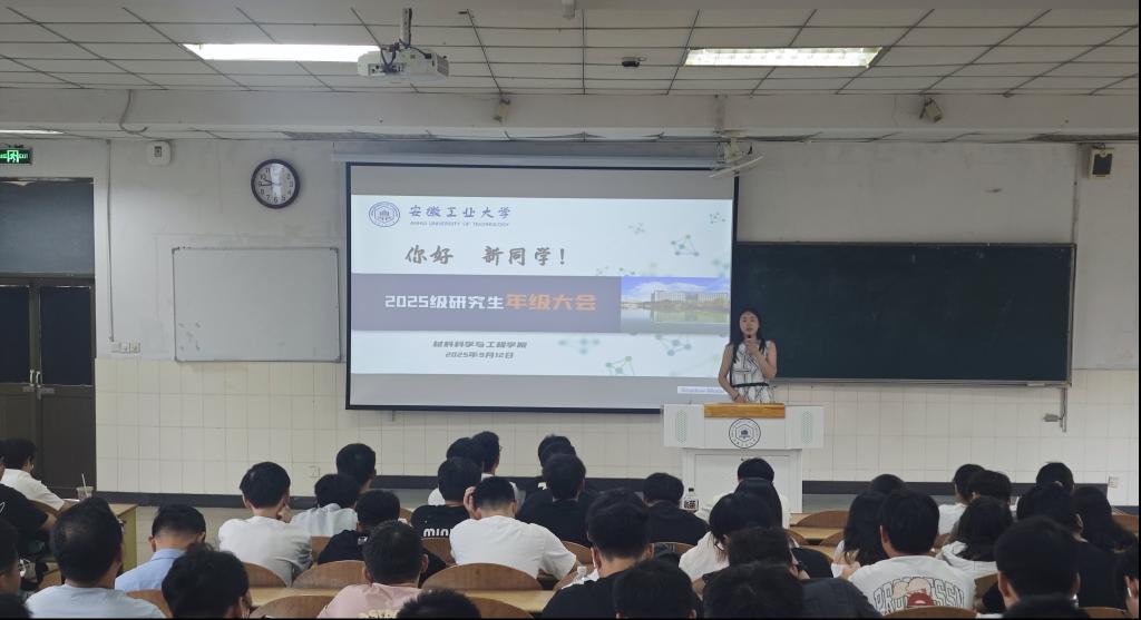 研究生辅导员主持,2025级全体硕博研究生共两百余人参加了会议。