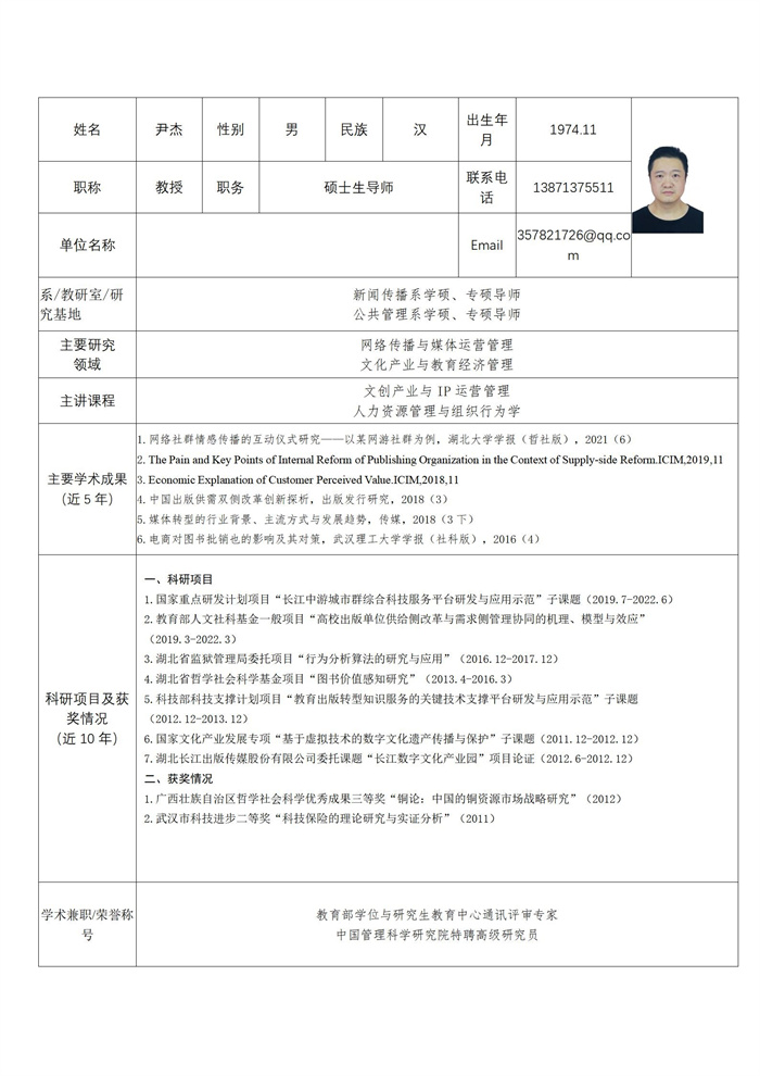 尹杰 教授