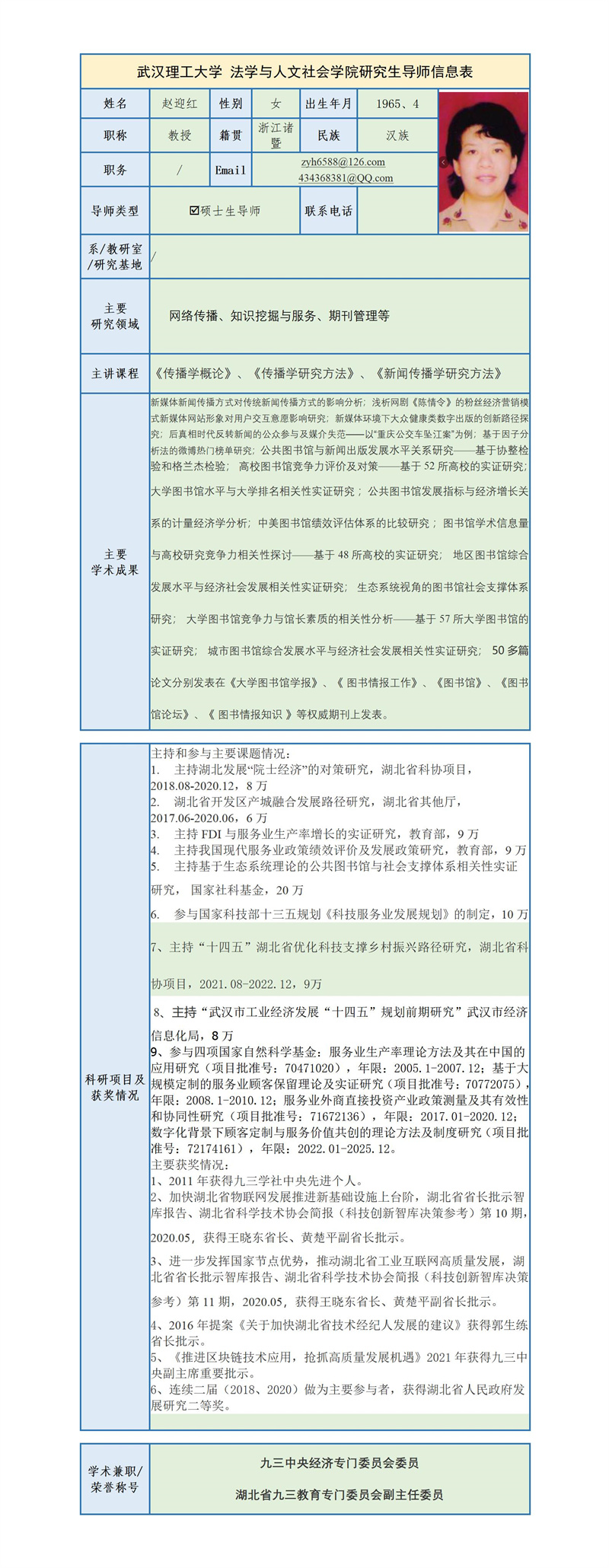 赵迎红 教授简介