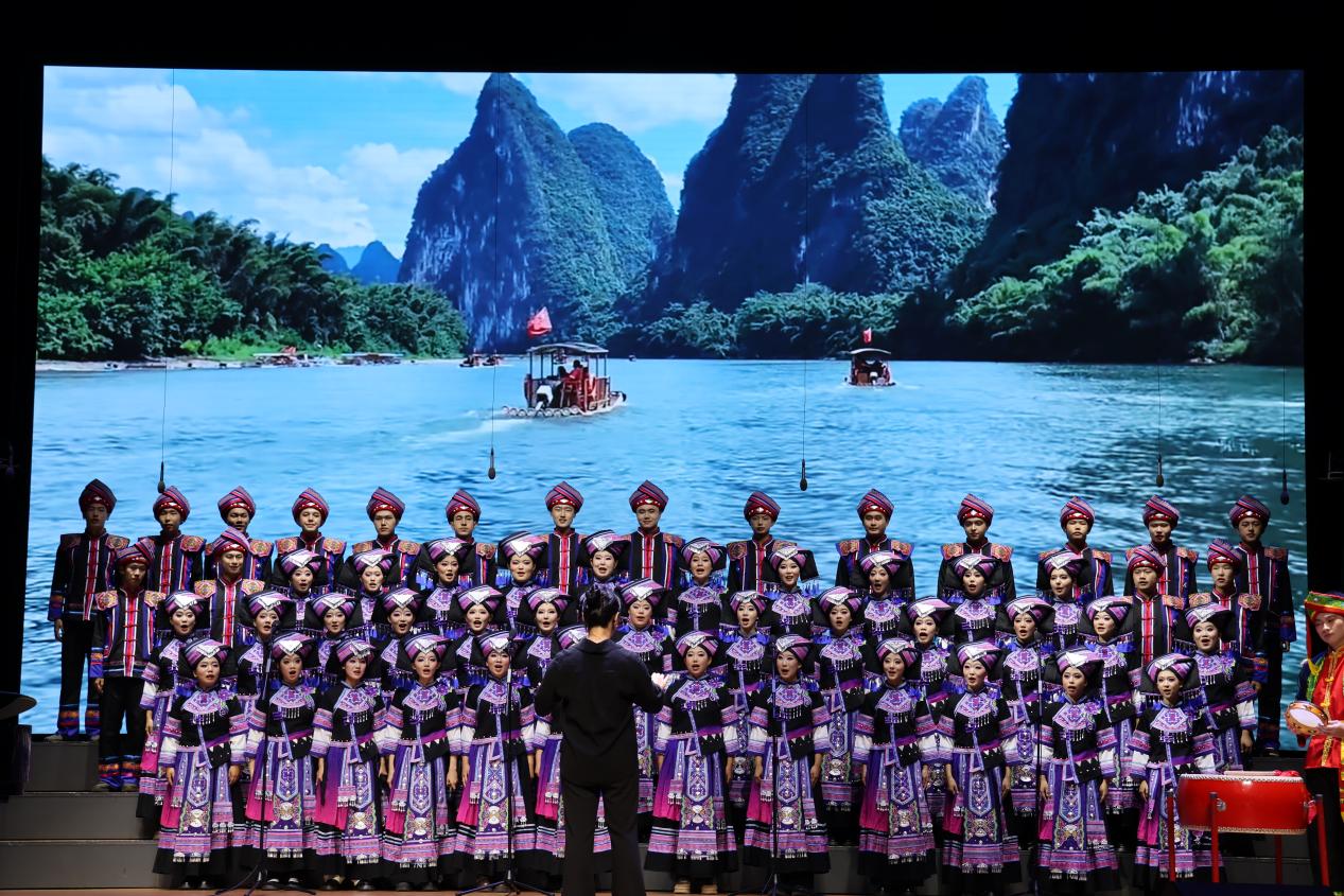 节目伊始,四川麻将血战到底 的同学们身着民族特色服饰,精神饱满地立于舞台中央。随着指挥老师手势扬起,欢快而富有节奏的旋律涌动而起。歌声时而清越如山泉,描绘出“三月三”春日里的秀丽风光;时而磅礴如江河,抒发出对美好生活的热情礼赞。高低声部错落有致、和谐交融,为全场观众构筑了一幅生机盎然的南国风情音画。