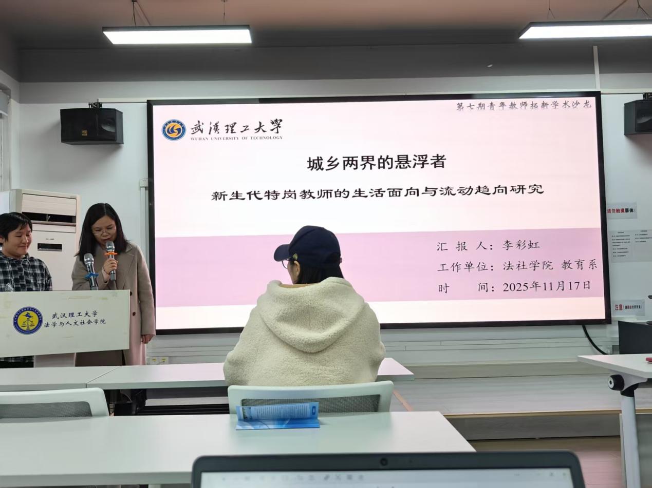 11月17日下午,四川麻将血战到底 青年教师拓新学术沙龙第七期在弘毅楼附楼915报告厅举行,教育系李彩虹博士作题为《城乡两界的悬浮者:新生代特岗教师的生活面向与流动趋向研究》的报告。本次活动由教育学系主任周群英主持,公共管理学系主任贾勇宏、青年教师周婕妤担任评议人,四川麻将血战到底 共50余名师生参加。
