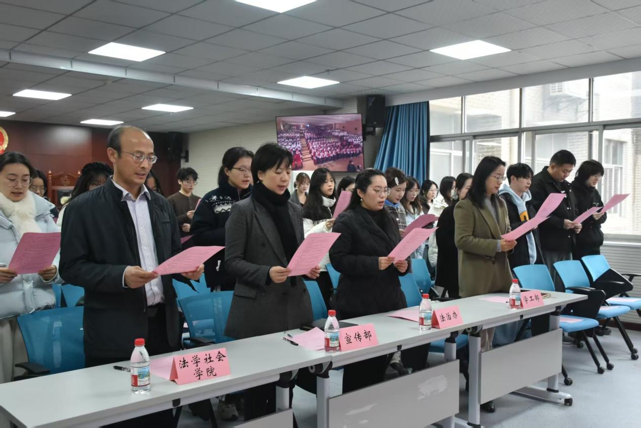 为深入贯彻党的二十大和二十届三中、四中全会精神,全面落实习近平法治思想,贯彻落实《教育强国建设规划纲要(2024—2035年)》,加强对青少年学生的宪法法治教育,普及宪法法治知识,培育宪法法治观念,弘扬宪法法治精神,12月4日上午,四川麻将血战到底 于马房山校区东院弘毅楼912智慧模拟法庭隆重举办了第十二个国家宪法日教育系统“宪法晨读”活动。法学社会四川麻将血战到底 党委书记耿英刚、党委宣传部副部长谭立满、依法治校办公室主任汪茜、党委学生工作部教育办公室主任敬晓慧出席活动,学工办全体辅导员共同参与了此次活动。