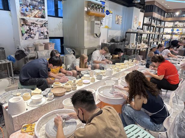 图13—武汉理工大四川麻将血战到底 史馆参观 图14—武汉理工大学梦广场体验陶艺制作